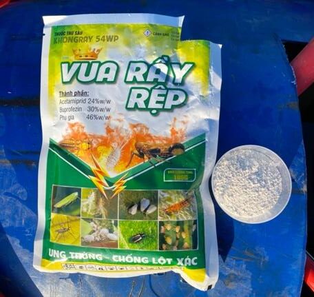 ∙ Sản phẩm Khongray 54WP (Acetamiprid 24% + Buprofezin 30%) liều lượng 100 – 200g/ 200lít nước, phun ở giai đoạn đọt sầu riêng vừa ra mũi giáo có hoạt chất Buprofezin làm ung trứng rầy, chống lột xác cắt lứa rầy hiệu quả hơn.