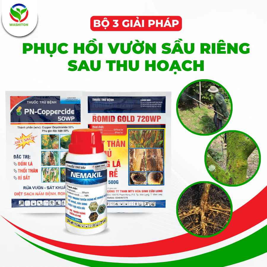 📞 Liên hệ ngay với Washiton Company để được tư vấn Bộ sản phẩm phục hồi vườn sầu riêng