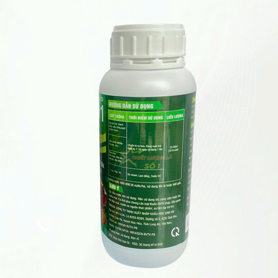 Cây ăn trái như thanh long, sầu riêng, quýt, chôm chôm… Chuẩn bị ra hoa, đang nuôi trái, định kỳ 7–10 ngày sử dụng 1 lần. Liều lượng 25–30ml/25 lít nước.