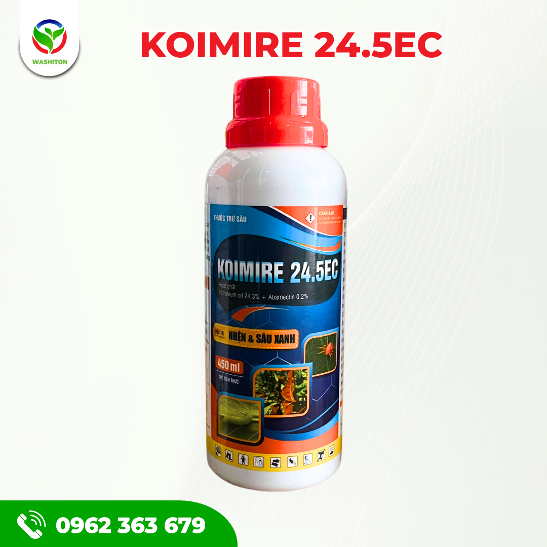 KOIMIRE 24.5EC là thuốc đặc trị nhện và sâu hiệu quả nhất trong tất cả các loại thuốc trên thị trường hiện nay. Petroleum có tác dụng bao bọc bên ngoài gây ngạt (do bịt lỗ thở). Abamectin tác dụng diệt nhanh; hai hoạt chất phối lại tạo thành sản phẩm hoàn hảo tiêu diệt đối tượng.