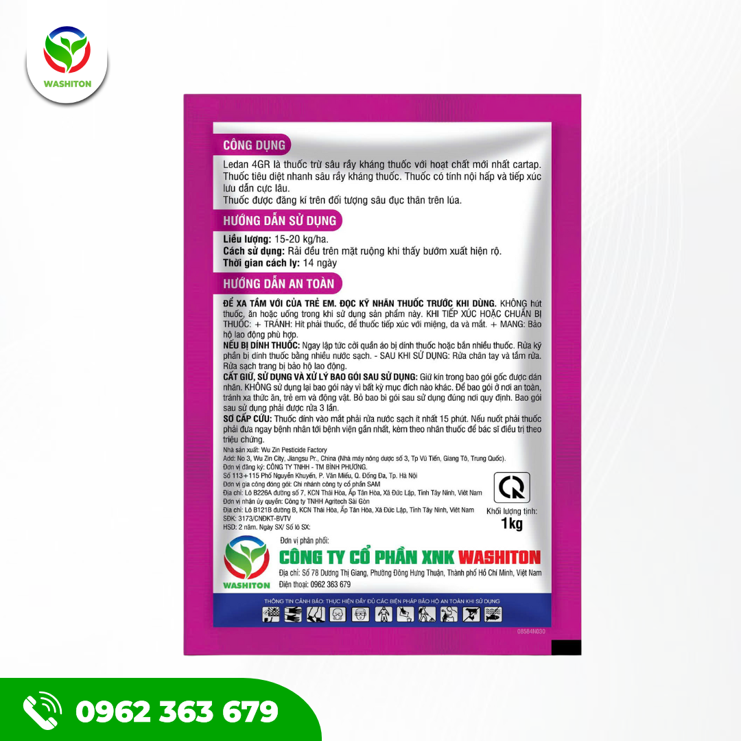 Ledan 4GR là dòng thuốc trừ sâu thế hệ mới, chứa hoạt chất Cartap Hydrochloride 4%, có khả năng diệt sâu nhanh, mạnh và kéo dài. Sản phẩm được nhiều bà con tin dùng để bảo vệ cây lúa, cây ăn trái và rau màu trước sâu đục thân, tuyến trùng và nhiều loại côn trùng gây hại khác.