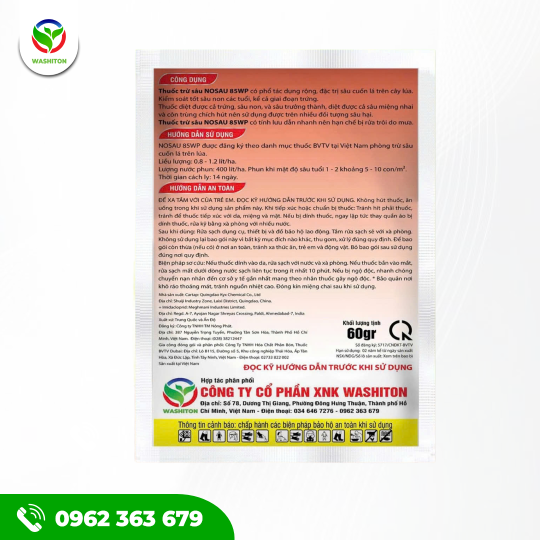 NOSAU 85WP được đăng ký theo danh mục thuốc BVTV tại Việt Nam phòng trừ sâu cuốn lá trên lúa.