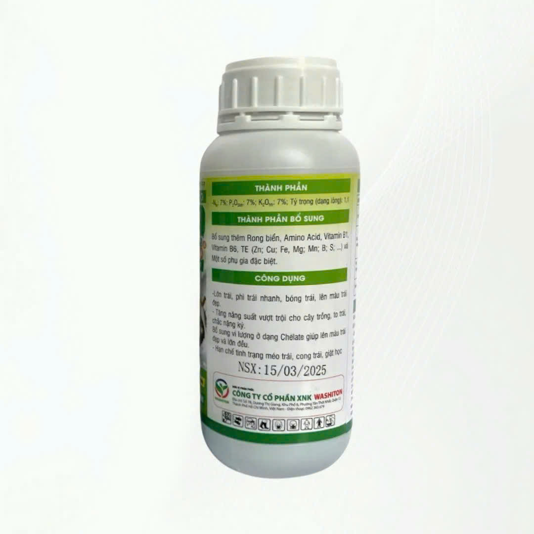 N: 7%; P₂O₅hh: 7%; K₂Ohh: 7%; Tỷ trọng (dạng lỏng): 1,1