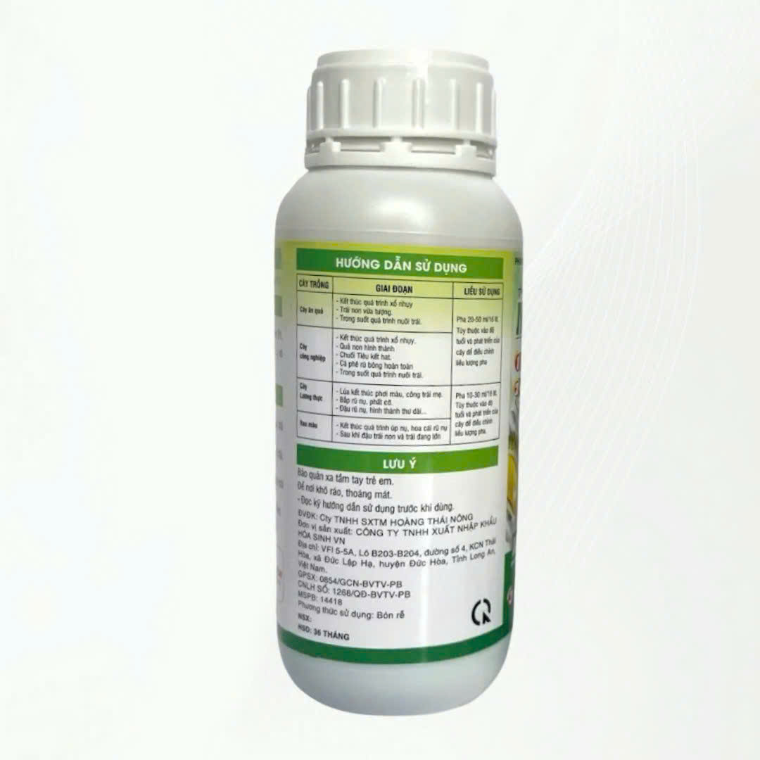 Phun đều trên tán lá và trái cây để đạt hiệu quả bổ sung dinh dưỡng, vi lượng.