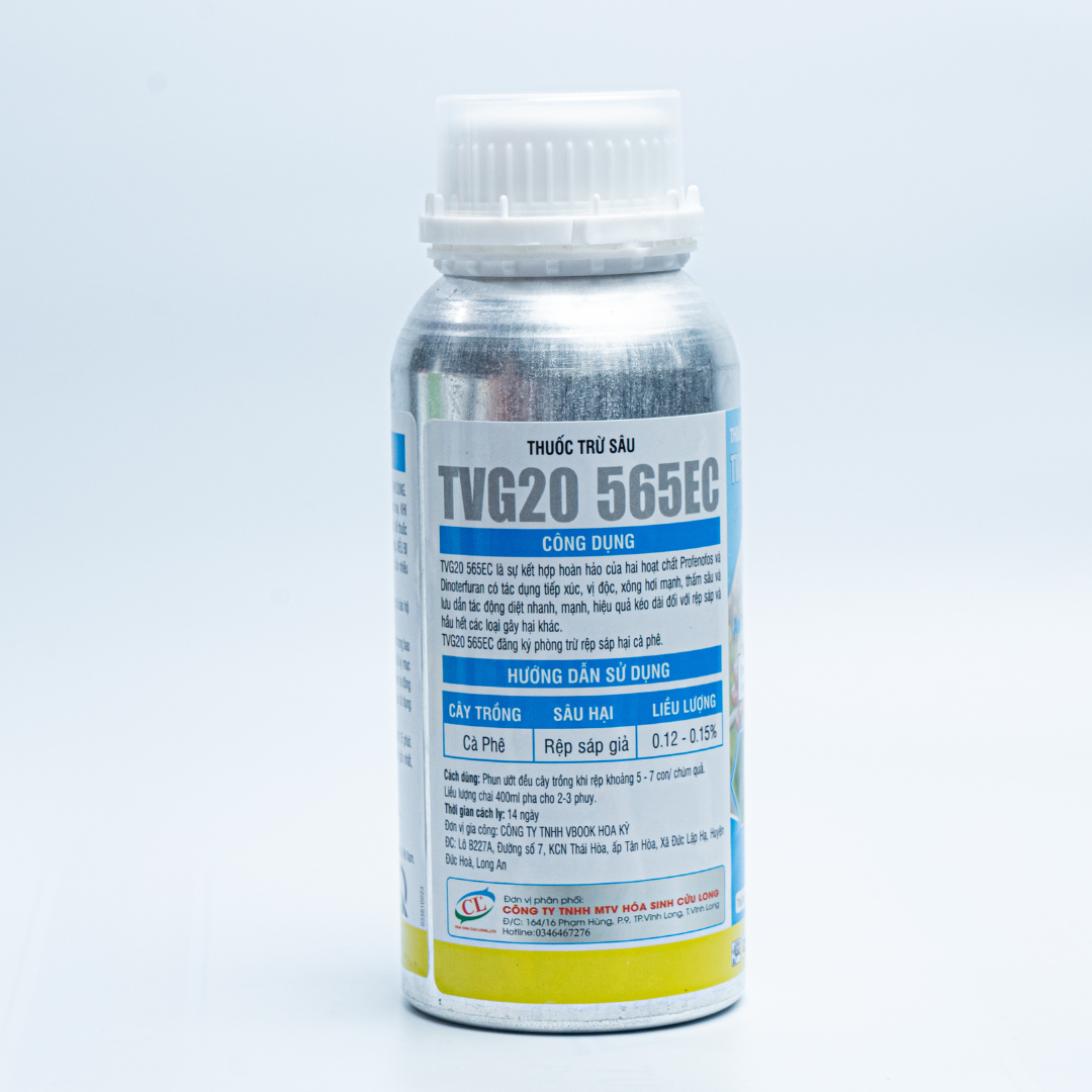 TVG20 565EC là sự kết hợp hoàn hảo của hai hoạt chất Profenofos và Dinotefuran có tác dụng tiếp xúc, vị độc, xông hơi mạnh, thấm sâu và lưu dẫn tác động diệt nhanh, mạnh, hiệu quả kéo dài đối với rệp sáp và hầu hết các loại gây hại khác.